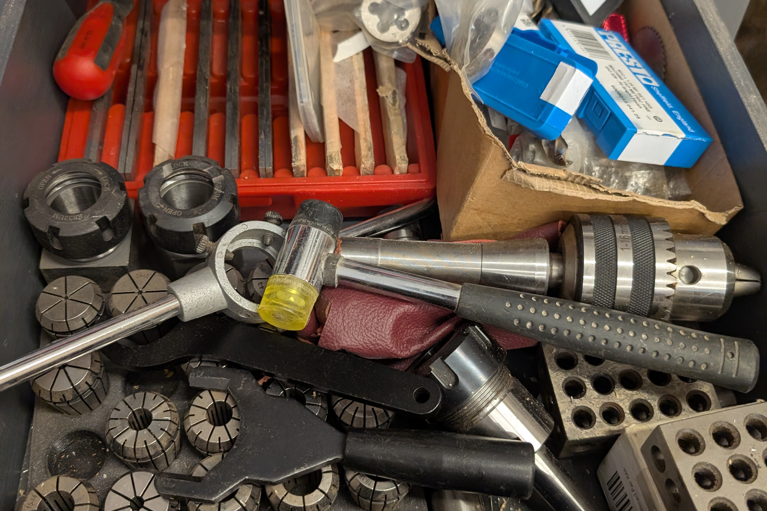 I've spent the last 15 years or so as a hobby maker - it's been my refuge from work. I've done lots of woodworking, some metalworking, electronics tinkering, leatherwork, jewelry-making and all sorts of other things that don't easily fit in a category. And all of those things have involved gathering tools, materials and supplies. So there's lots of stuff.